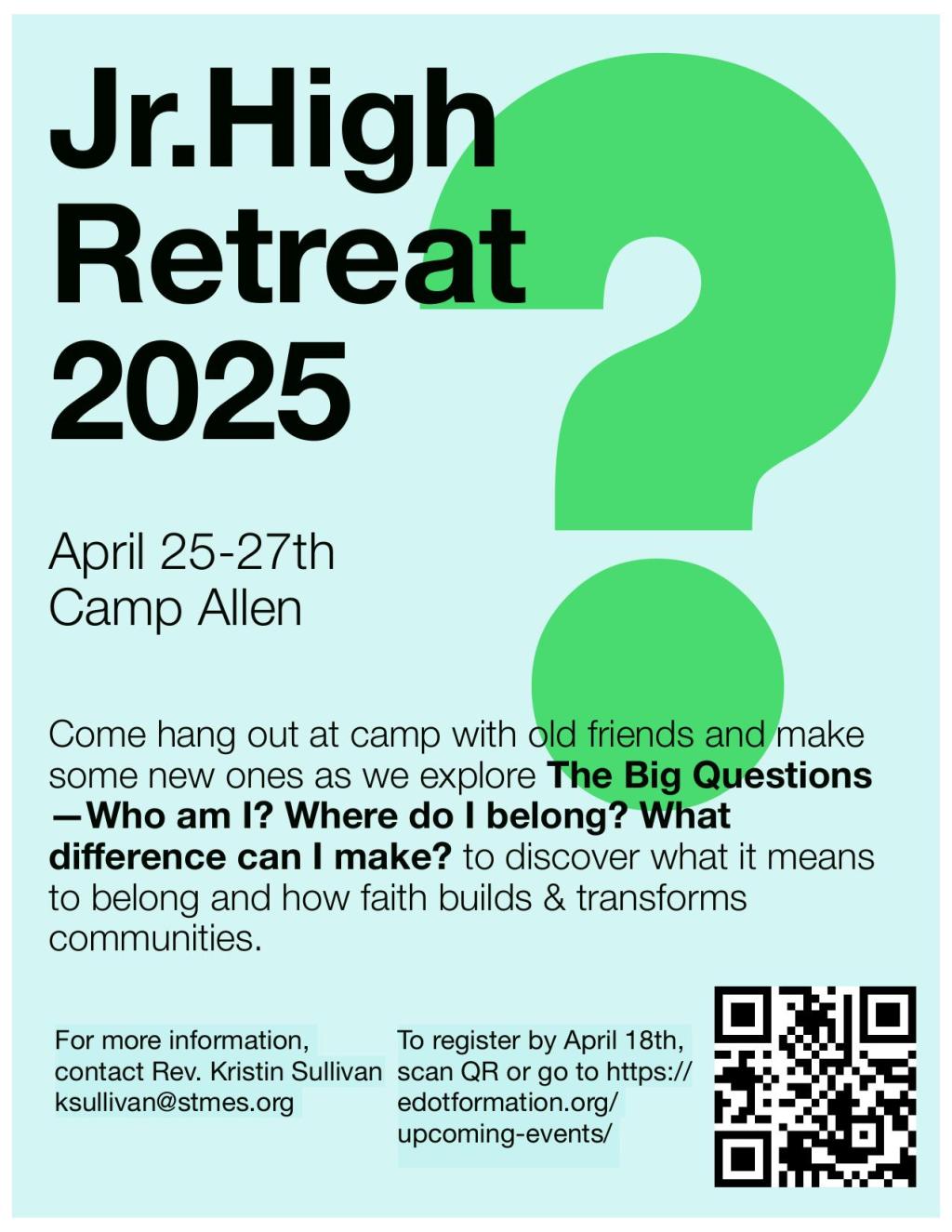 The Big Questions: Jr. High Retreat, April 25-27, 2025, Camp Allen