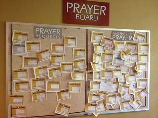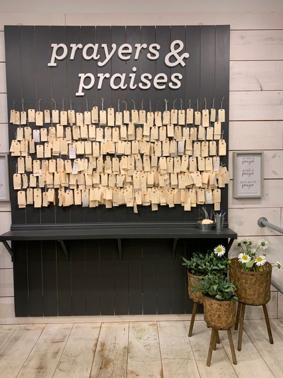 - You could also simply offer a whiteboard or chalkboard where people could share their prayers and questions.